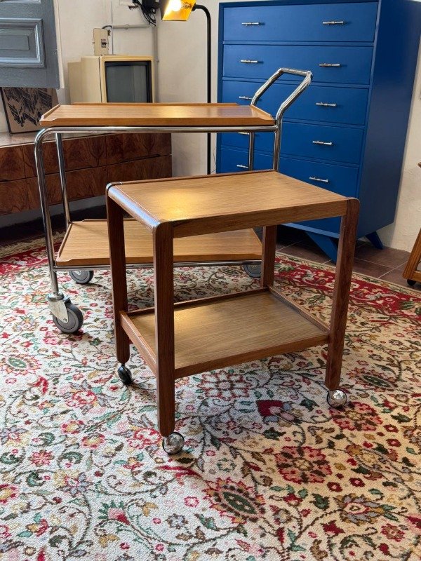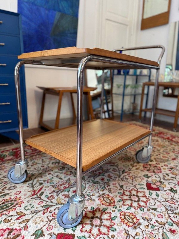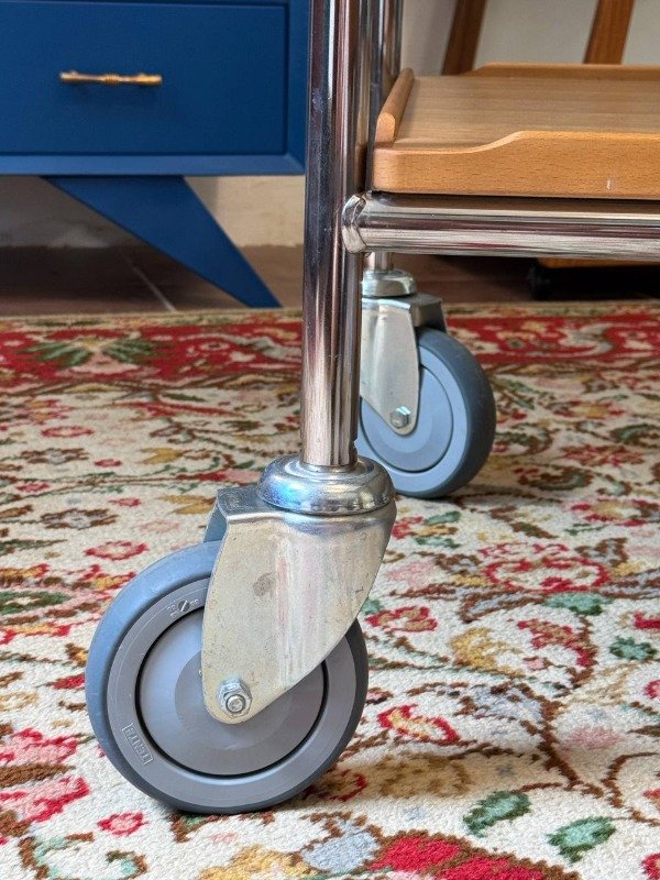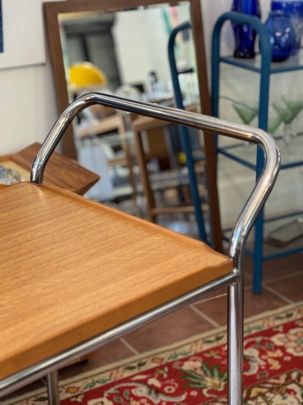 Mesa rodante sueca marca Hallins. Es grande y está como nueva. Es de madera de teca y estructura cromada.