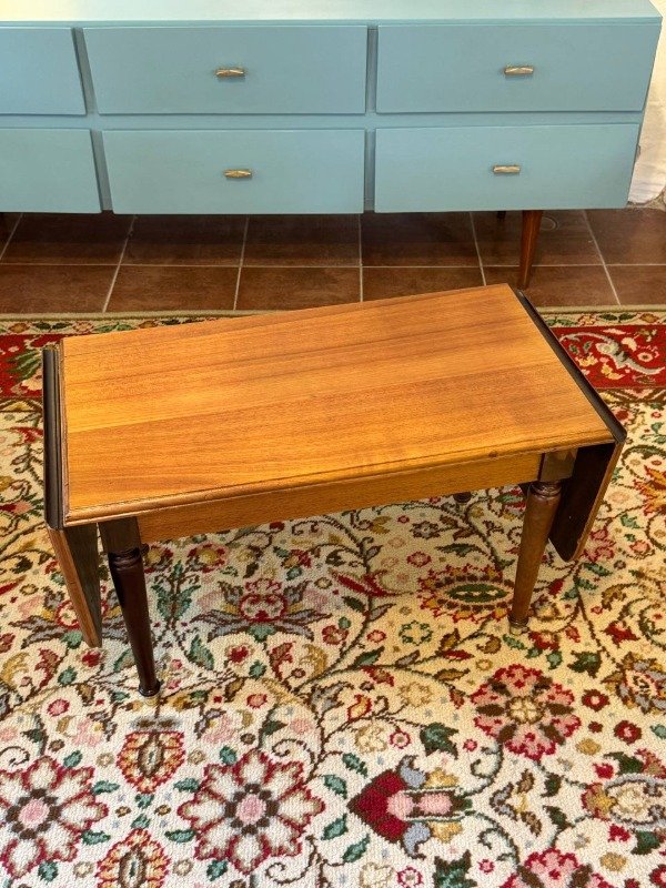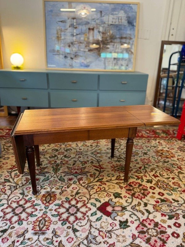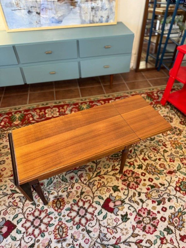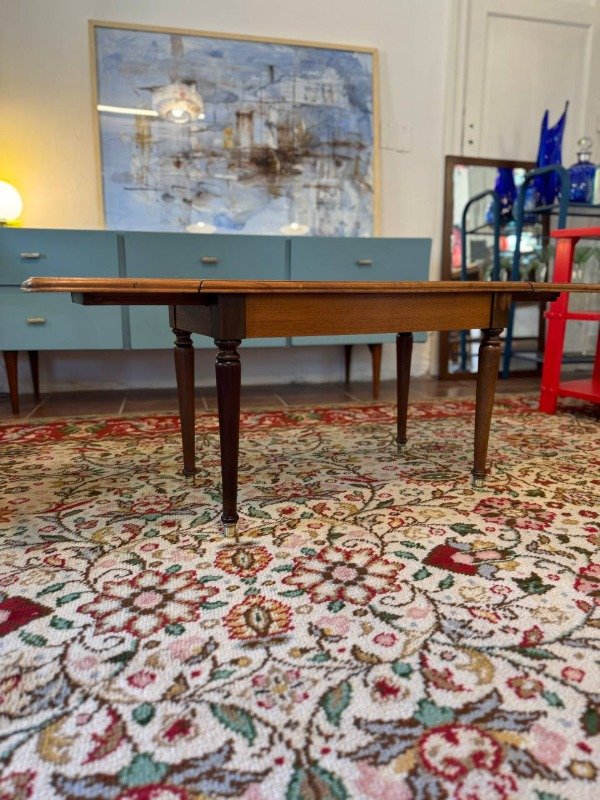 Mesa antigua restaurada. Es extensible. Terminación: laca satinada.