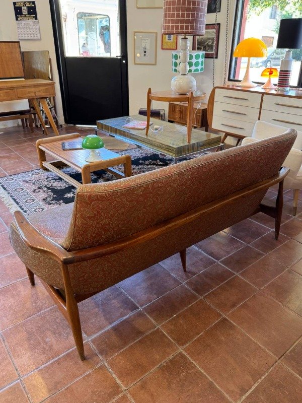 Sillón tres cuerpos diseño Finn Juhl. El precio incluye el lustre y retapizado pero no la tela (a elección del cliente). También tenemos un sillón de un cuerpo.