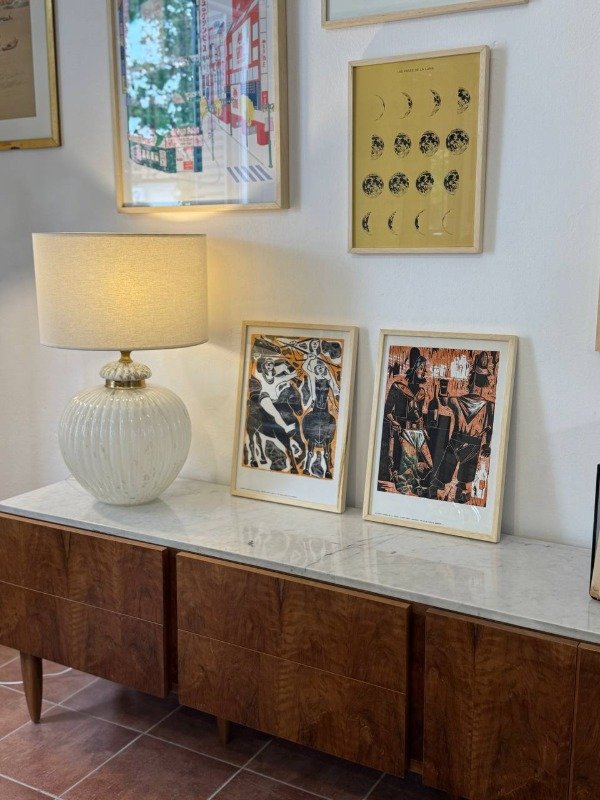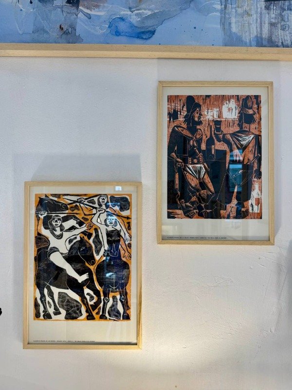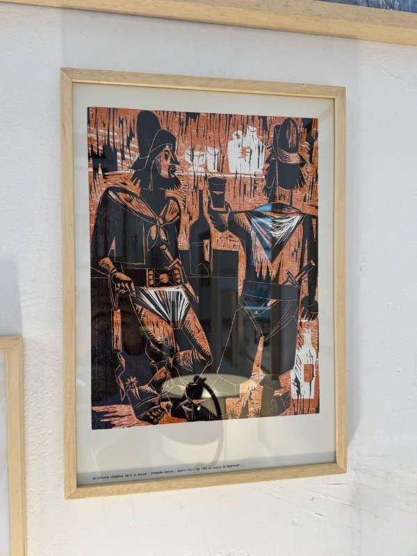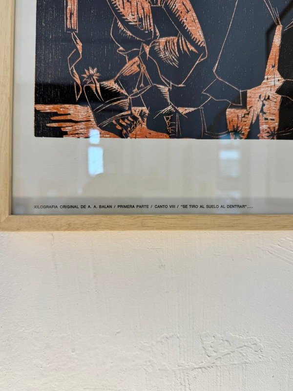 Xilografía original de A. Balan "se tiro al suelo al dentrar". Marco nuevo.