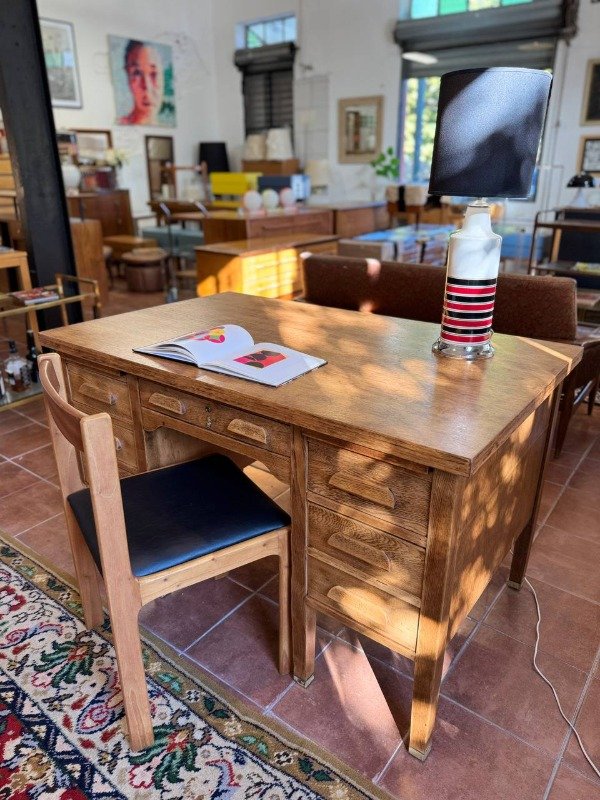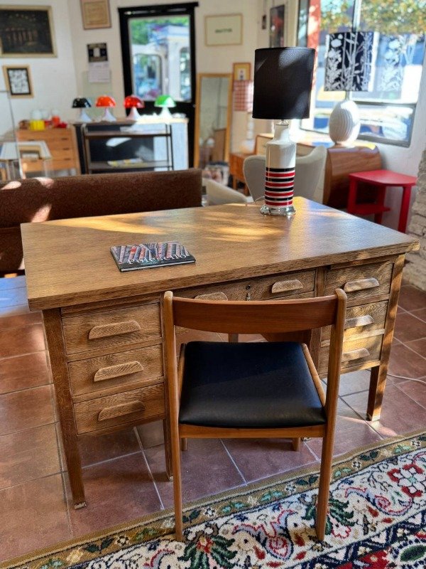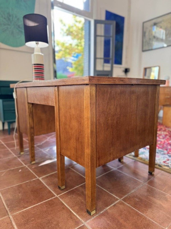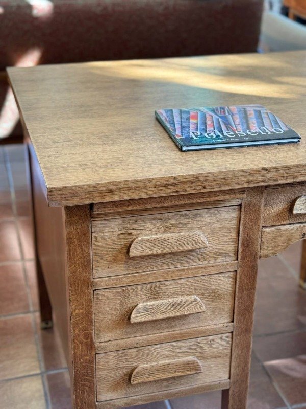Escritorio ministerio de roble restaurado. Terminación: satinada