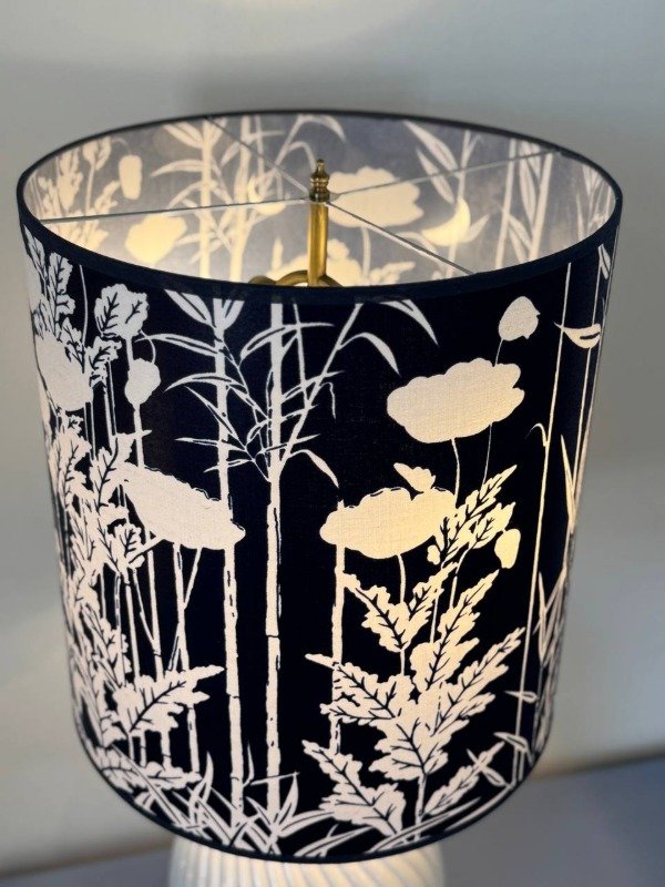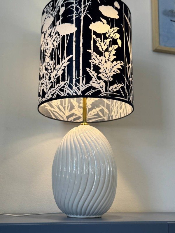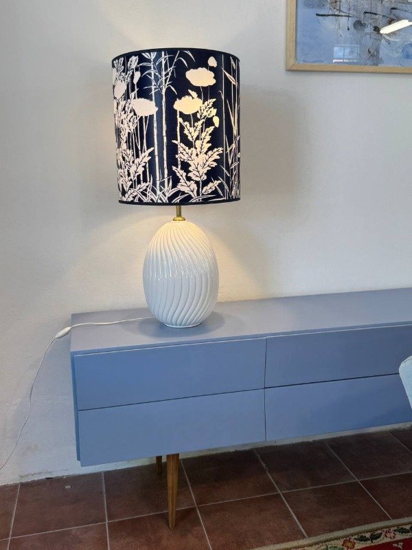 Lámpara vintage de cerámica. La pantalla está hecha a nuevo (tela importada vintage) y la parte eléctrica también.