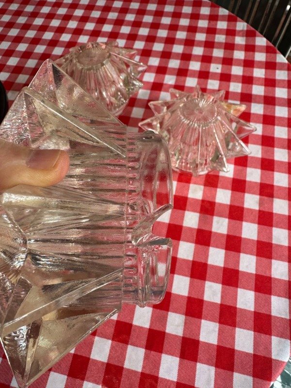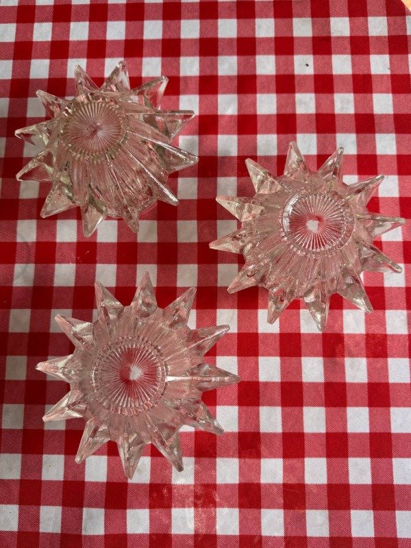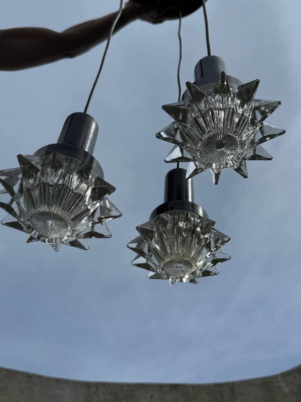 Lámpara ILUM vintage. Tiene 3 tulipas de vidrio al molde con forma de estrella. El cableado es nuevo y las lámparas fueron pintadas de negro.