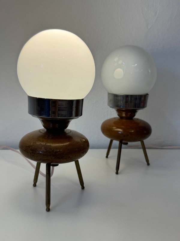 Veladores vintage. Tienen patitas de bronce, cuerpo de madera y cromo. Las tulipas son nuevas (6 x 10). Precio por unidad.