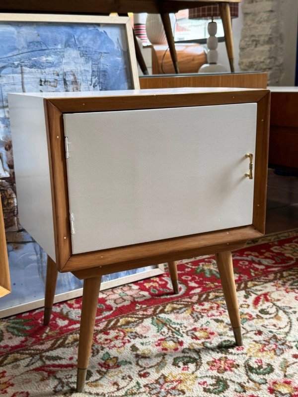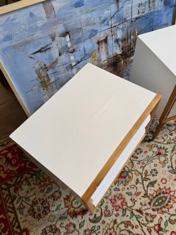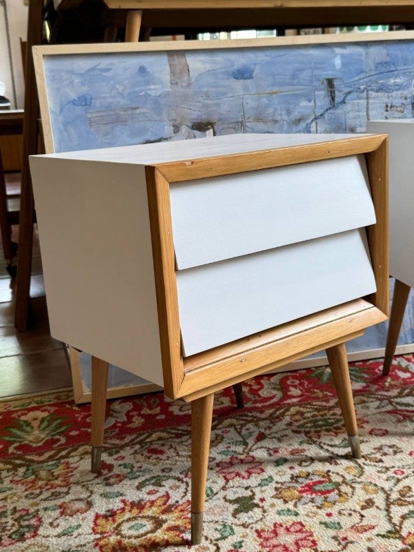 Mesitas de luz americanas restauradas.Una tiene un detalle en la tapa de arriba ( ver foto 4 y 5).